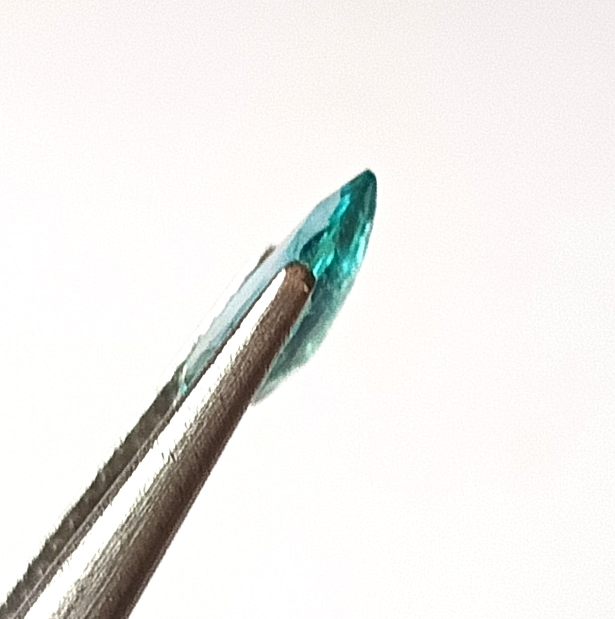 Discover the refined elegance of this exceptional 0.95-carat Zambian emerald, expertly cut into a graceful pear shape. Its captivating blueish-green hue—a hallmark of premium Zambian emeralds—radiates depth and sophistication. Measuring 6x9x2.6mm, this natural gemstone showcases the authentic character and subtle inclusions that distinguish genuine emeralds from treated alternatives. Perfect for bespoke jewelry designs, this one-of-a-kind stone embodies timeless luxury and natural beauty for the discerning collector.