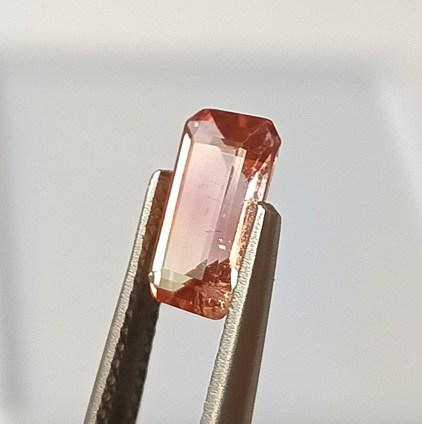 Discover the captivating allure of this 1.45-carat bi-colour tourmaline, a rare gemstone showcasing nature's artistry. Cut in the elegant emerald style with dimensions of 5.6×9.4×3.5mm, this natural stone displays a mesmerizing blend of contrasting hues that dance across its faceted surface. Each tourmaline is entirely unique, making this a truly one-of-a-kind addition to fine jewelry collections. Perfect for the discerning collector who appreciates the sophistication of natural gemstones with distinctive character and timeless beauty.