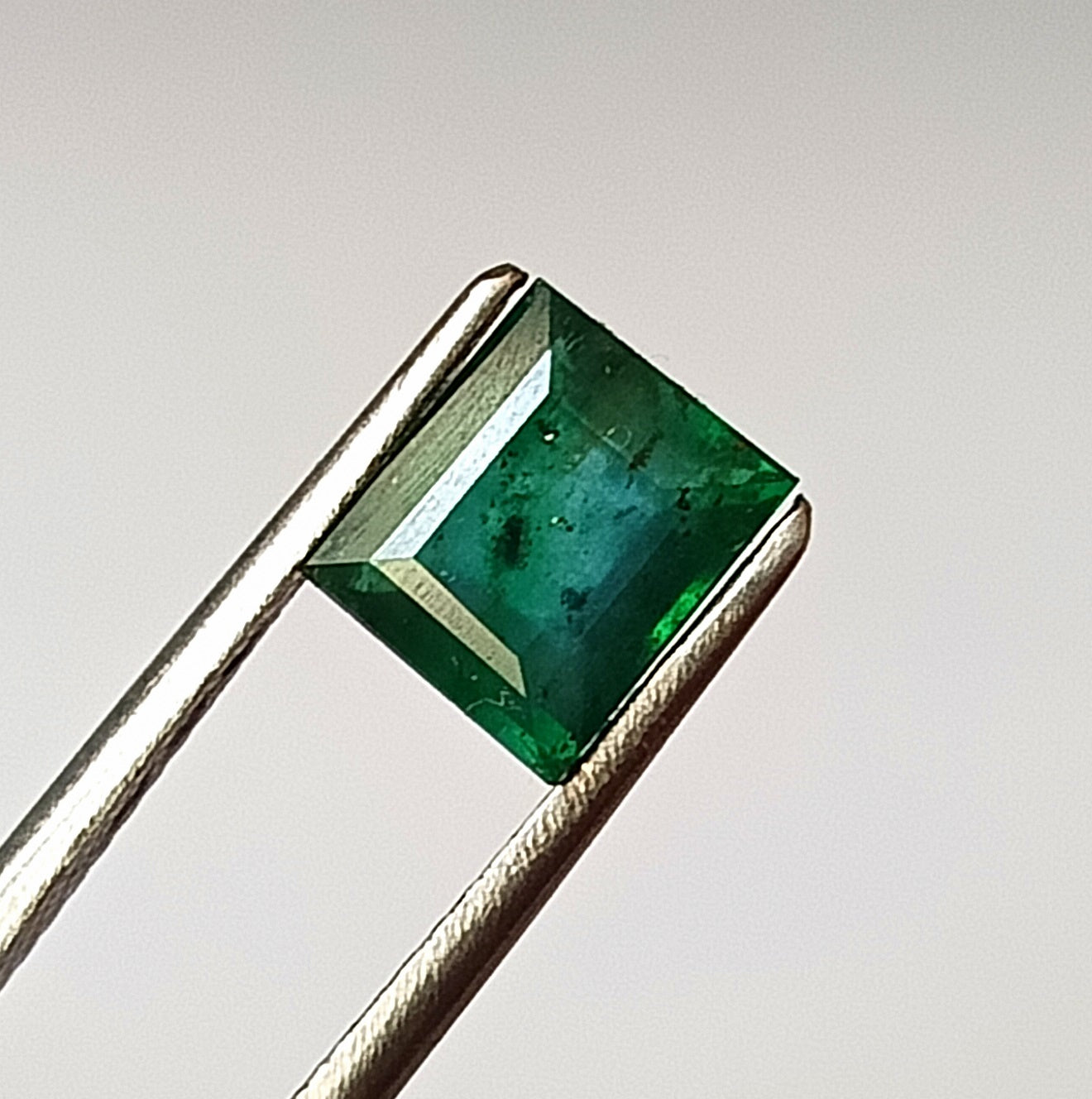 A stunning natural Zambian emerald showcasing the timeless elegance of a baguette cut. Weighing 1.45 carats with dimensions of 6x7x3.7mm, this gemstone displays the rich, verdant hues characteristic of premium Zambian sources. The precise baguette faceting enhances its clarity and luminosity, making it an exceptional choice for refined jewelry designs. Each stone is entirely natural, offering the authenticity and uniqueness that discerning collectors and designers seek. Perfect for creating heirloom-quality pieces that endure.