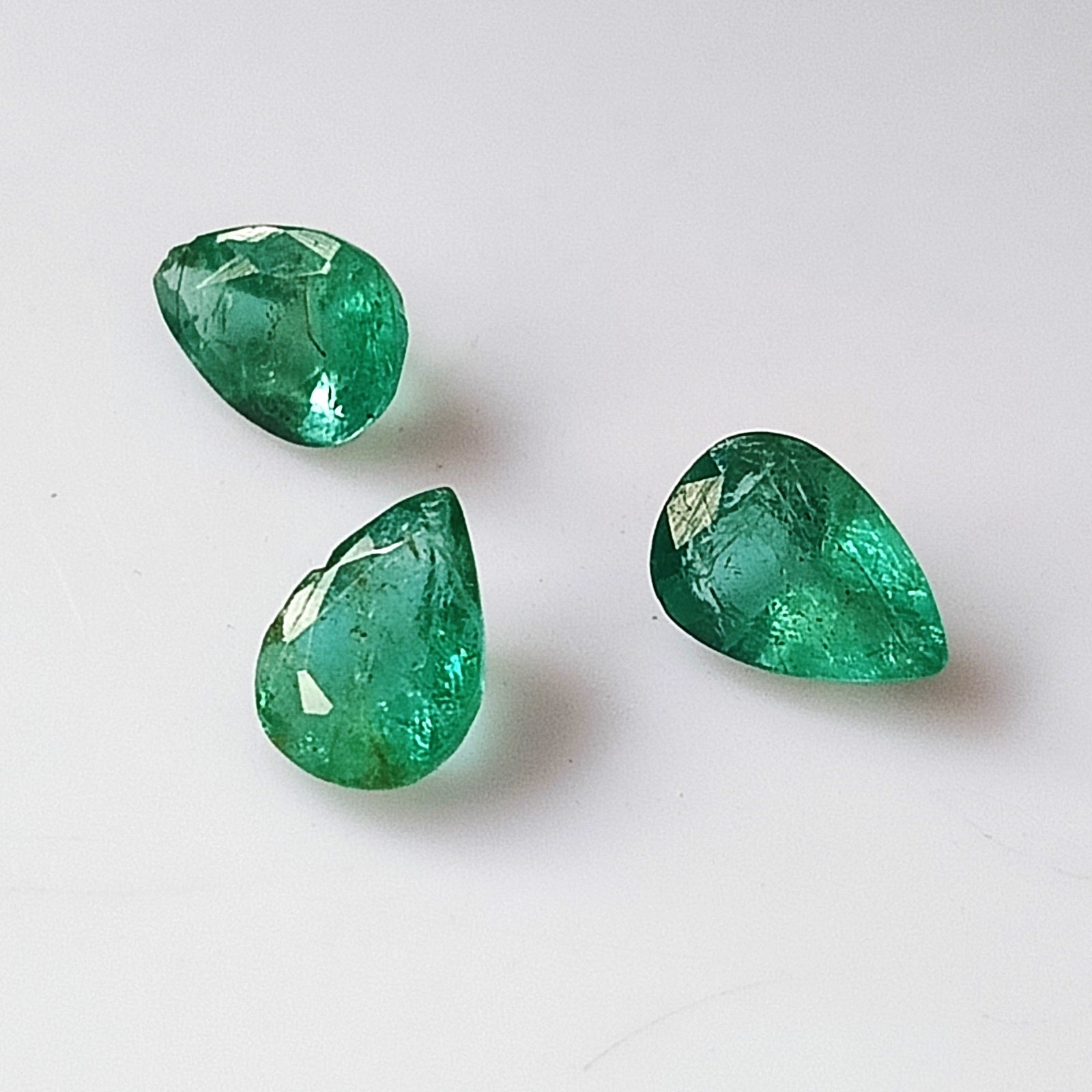 1.75 Carat 3 Pieces 7X5 MM Pear Cut Natural Faceted Zambian Emerald Lot