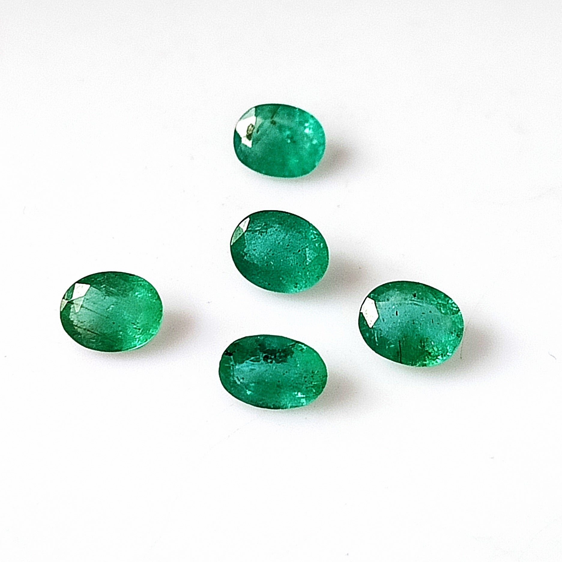 1.75 Carat 5 Pieces 4X5 MM Oval Cut Natural Faceted Zambian Emerald Lot
