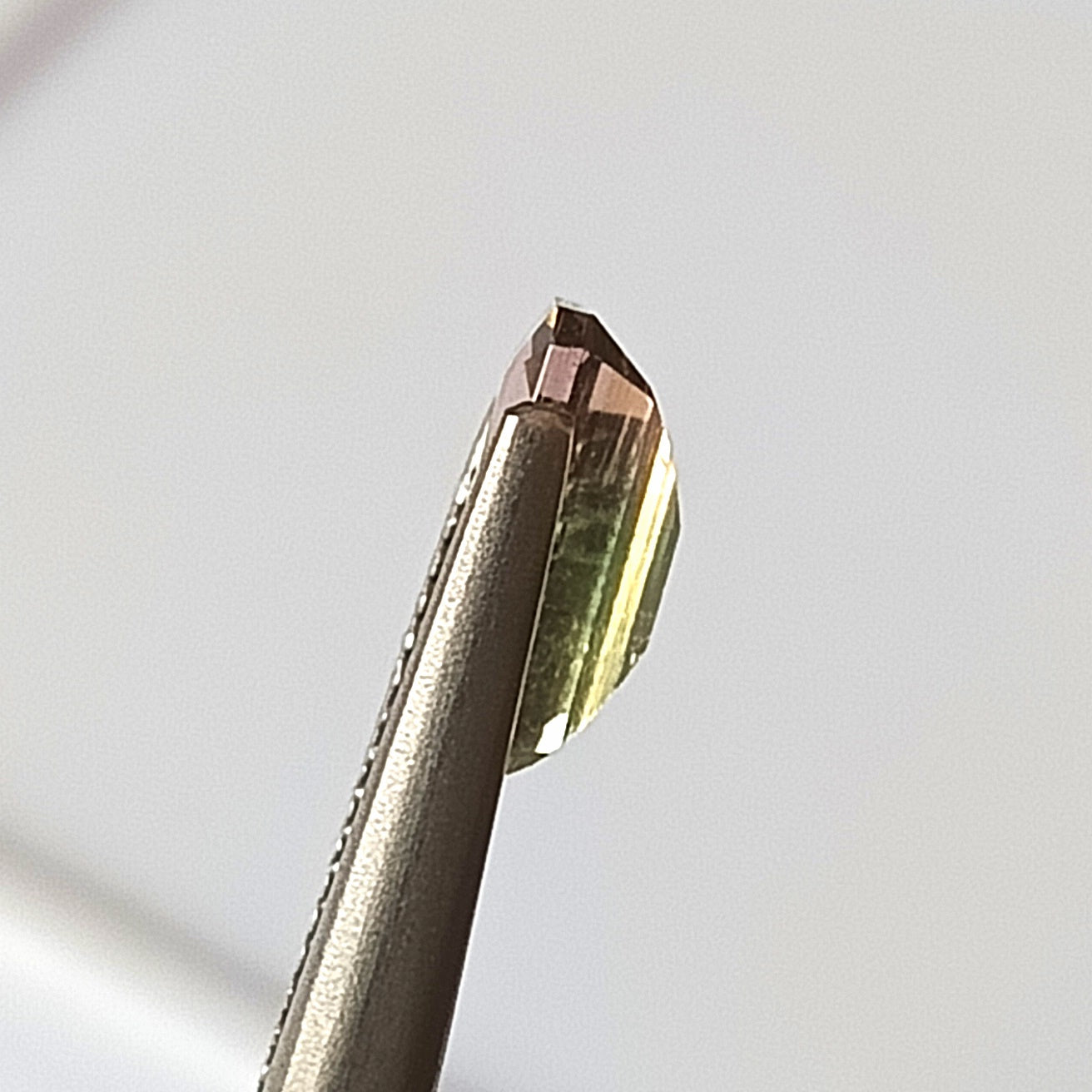 A stunning 1.85-carat bi-colour tourmaline showcasing nature's artistry in a refined emerald cut. This exceptional gemstone displays a captivating blend of contrasting hues across its 5.5 x 9.7 x 4.2mm dimensions, creating a mesmerizing interplay of color that draws the eye. The precise emerald cut enhances the stone's clarity and depth, making it an ideal centerpiece for bespoke jewelry designs. Each facet reveals the gemstone's natural character and sophisticated appeal, perfect for the discerning collector seeking a truly one-of-a-kind treasure.