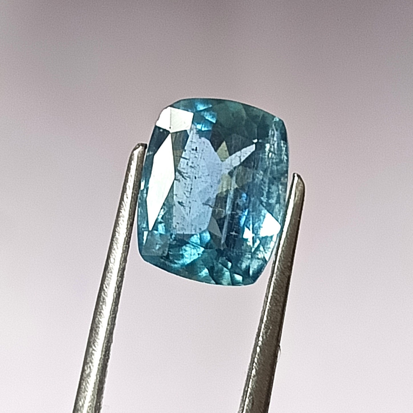 Discover the serene elegance of this exceptional 2.45-carat Santa Maria aquamarine, celebrated for its mesmerizing blue-green hues and remarkable clarity. Expertly cut in a cushion shape with dimensions of 7.7x9.6x5mm, this natural gemstone showcases the distinctive characteristics that make Santa Maria aquamarines highly coveted by connoisseurs. Each facet reveals the stone's luminous transparency and refined color saturation, making it an ideal centerpiece for bespoke fine jewelry. A rare treasure for those who appreciate the understated sophistication of premium aquamarines.