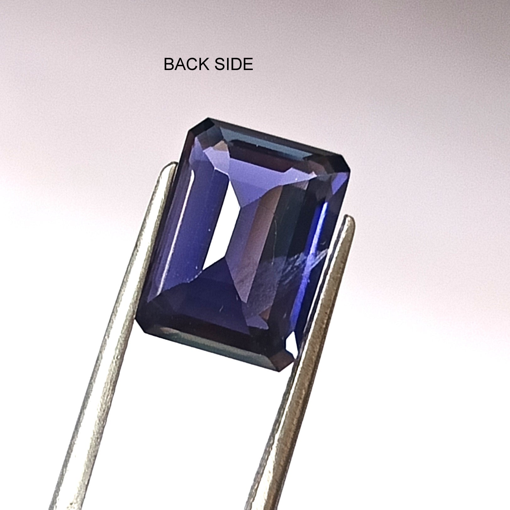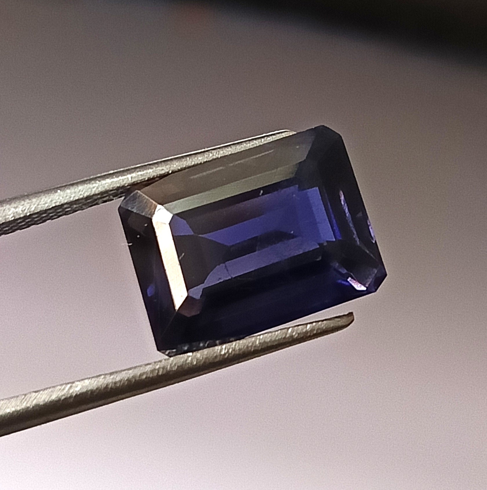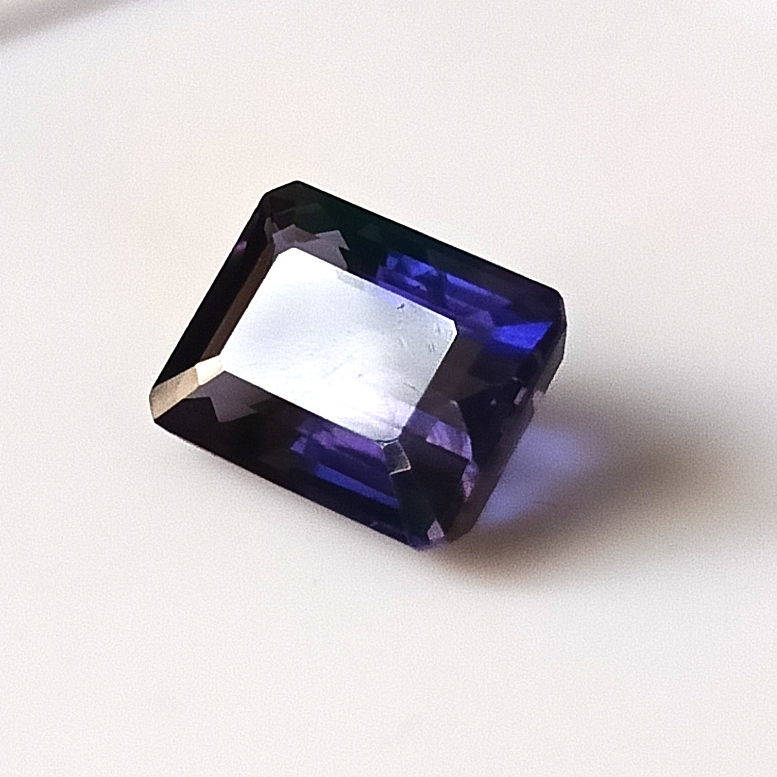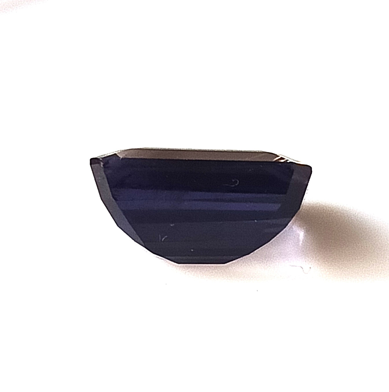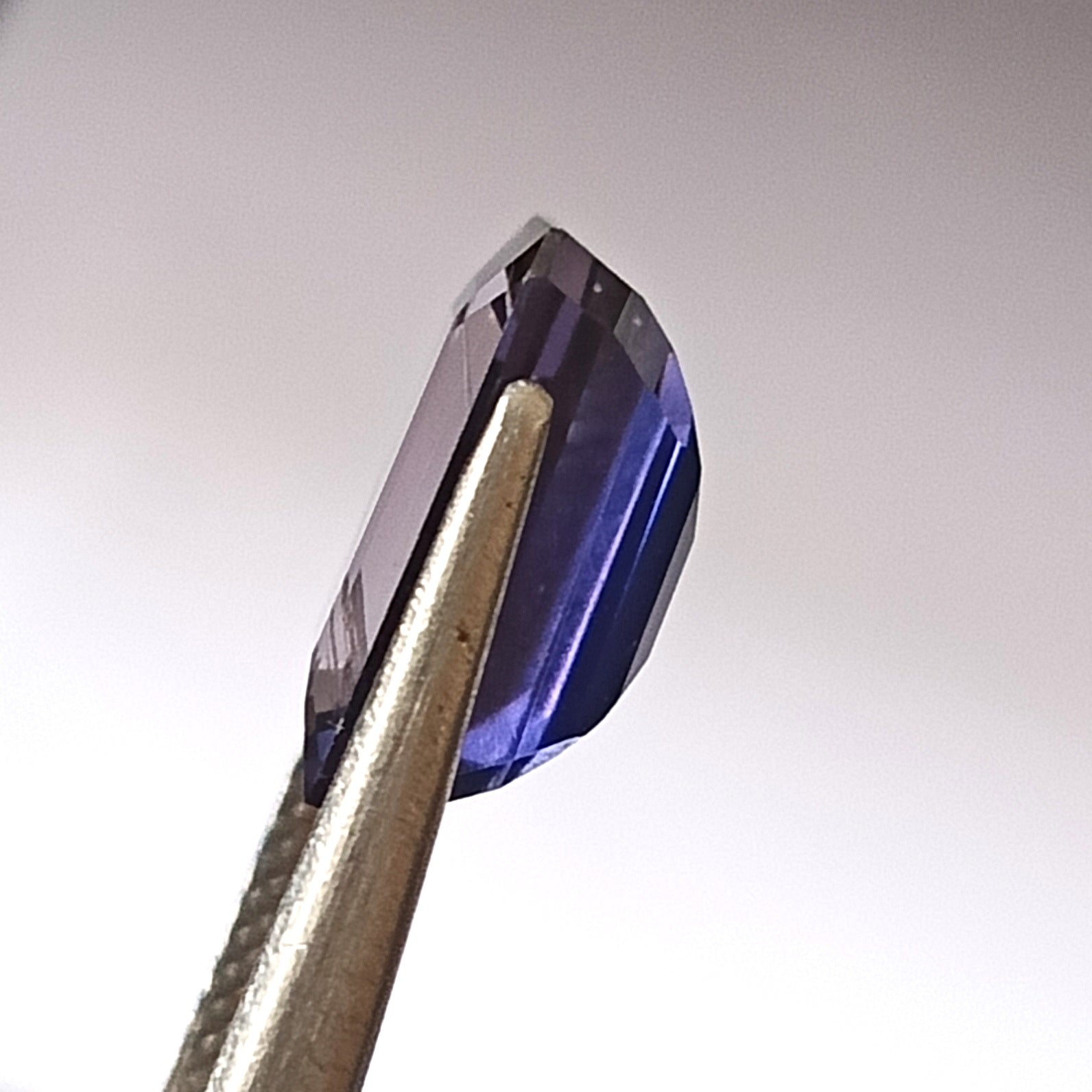 A striking 5.65-carat natural iolite in emerald cut, measuring 9.4x12.5x6.4mm. This unheated gemstone displays the characteristic pleochroic violet-blue coloration that defines premium iolite. The rectangular faceting maximizes color depth and transparency, delivering sophisticated elegance for high-end jewelry applications or discerning gem enthusiasts.